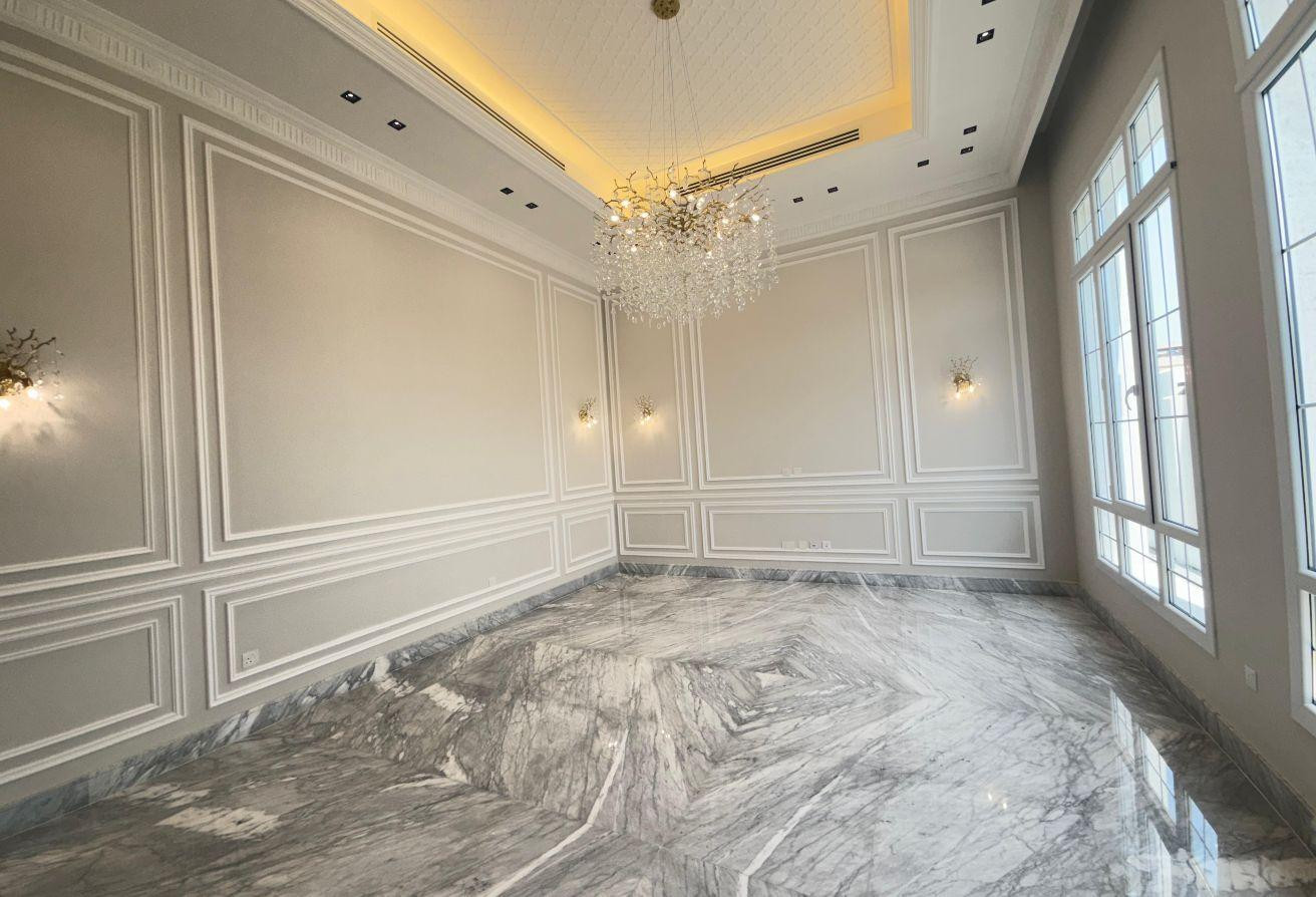 - Ground Floor: Majlis, dining hall, large hall, family dining area, fully equipped internal kitchen, and master bedroom.